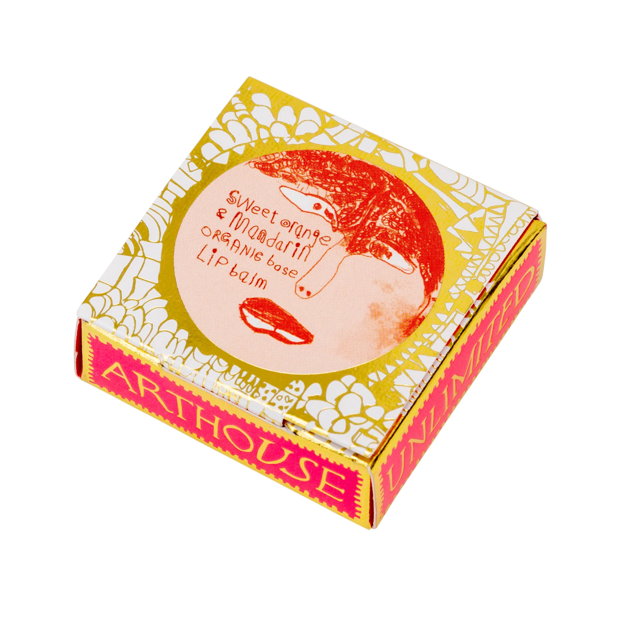 This delicately scented Sweet Orange & Mandarin lip balm is a moisturising treat for your lips. Made in the UK using naturally derived plant based ingredients including Shea butter, Jojoba oil, Beeswax & Melissa oil (known for its antibacterial properties).The lip balm nestles in a neon pink & rich gold box with a lid that opens to reveal its treasure, Peter Andrew’s artistic take on the face of Lady Muck herself.
