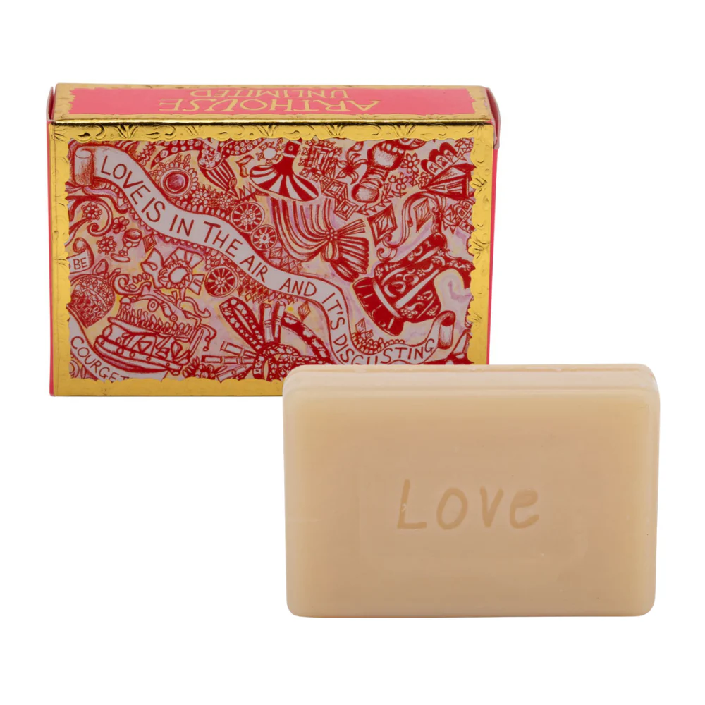 This opulent plant based cold pressed soap, is gently fragranced with Tomato Leaves, Orchid and Plum. Featuring the collaborative 'Love is in The Air' artwork, the 100g paraben-free soap is triple milled for a longer-lasting luxurious lather.